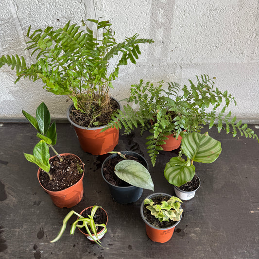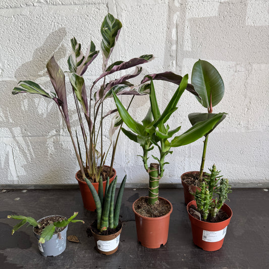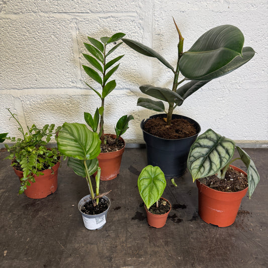 These Rescue Me! Boxes require care and attention to nurse them back to full, luscious house plants. These boxes are ideal for somebody who likes to spend time researching their plant care as every box is different and includes a variety of plants as shown.